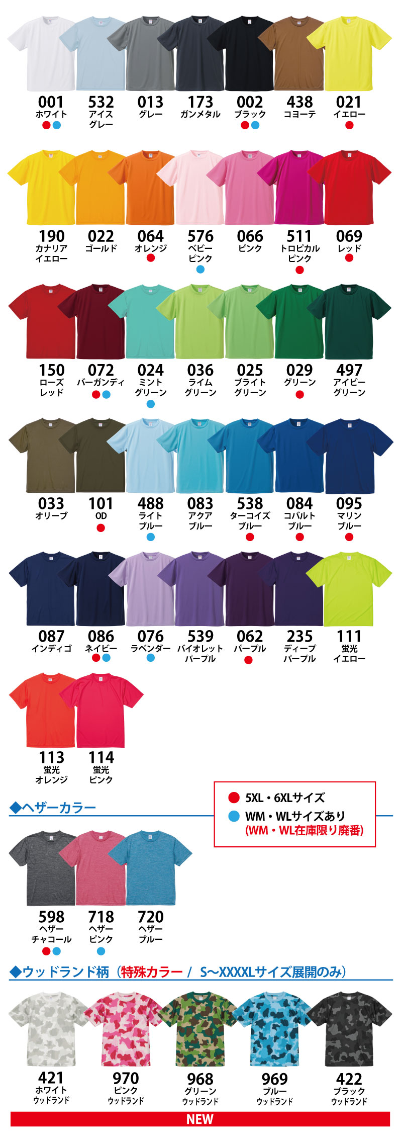 ●5XL・6XLとWM・WLサイズは一部カラーのみになります。